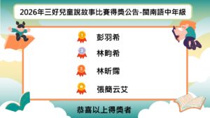 【活動公告】2026年三好兒童說故事比賽得獎公告-閩南語組