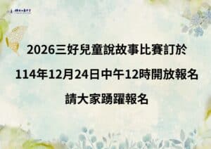 【活動公告】2026年三好兒童說故事比賽12/24起開放報名