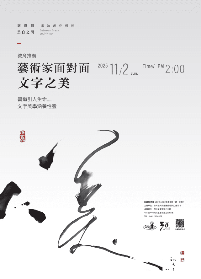 【佛光緣美術館台中館】「黑白之間-謝輝龍書法創作個展」