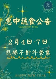 [道場公告]惠中蔬食2/4~7日 包場公告
