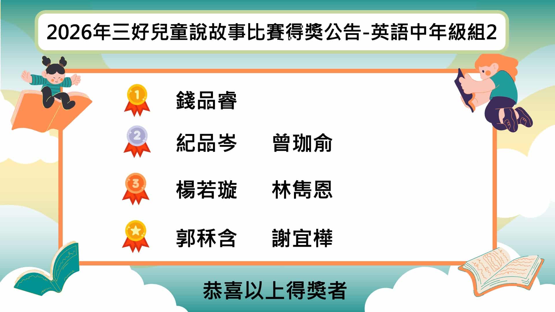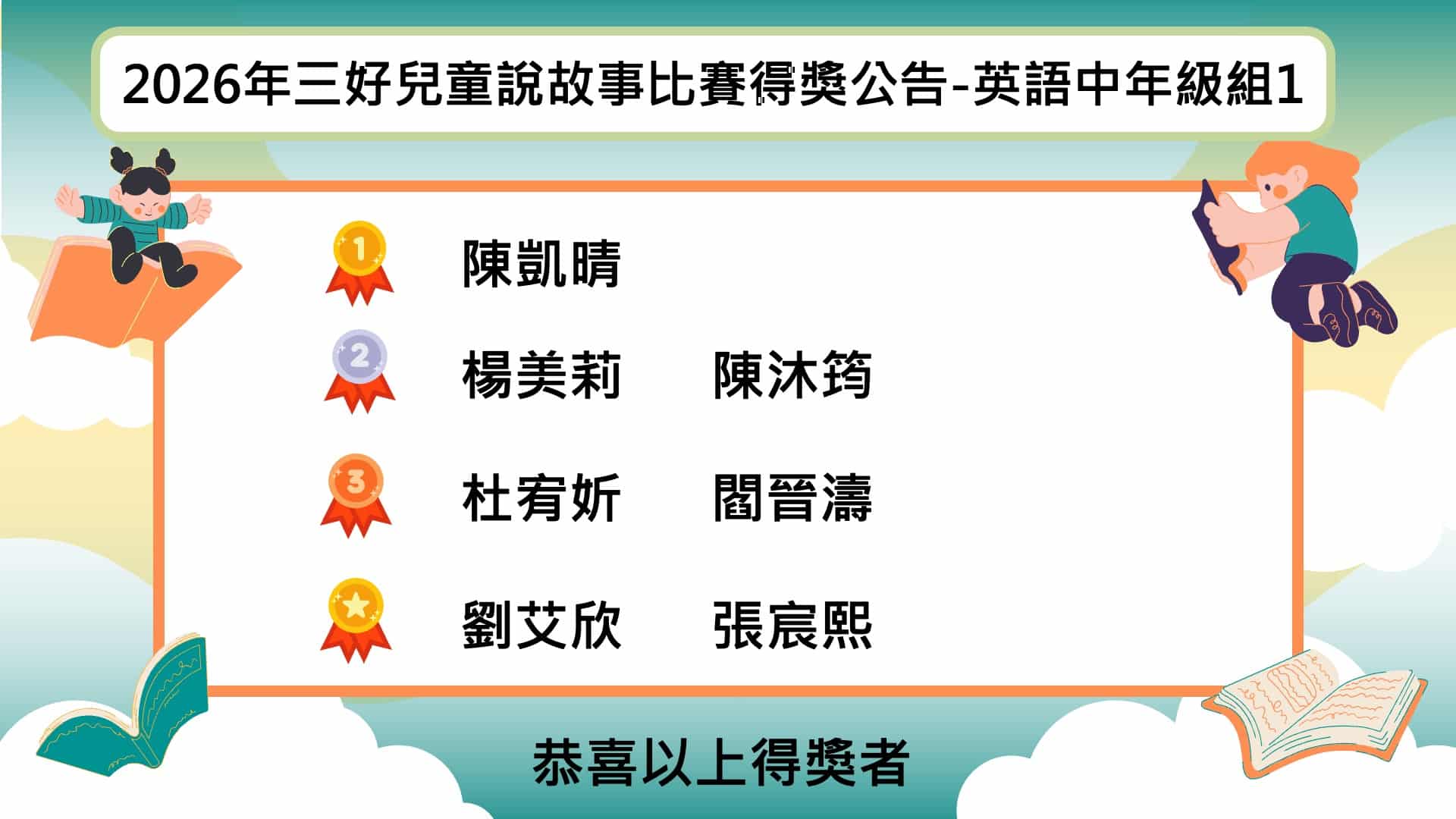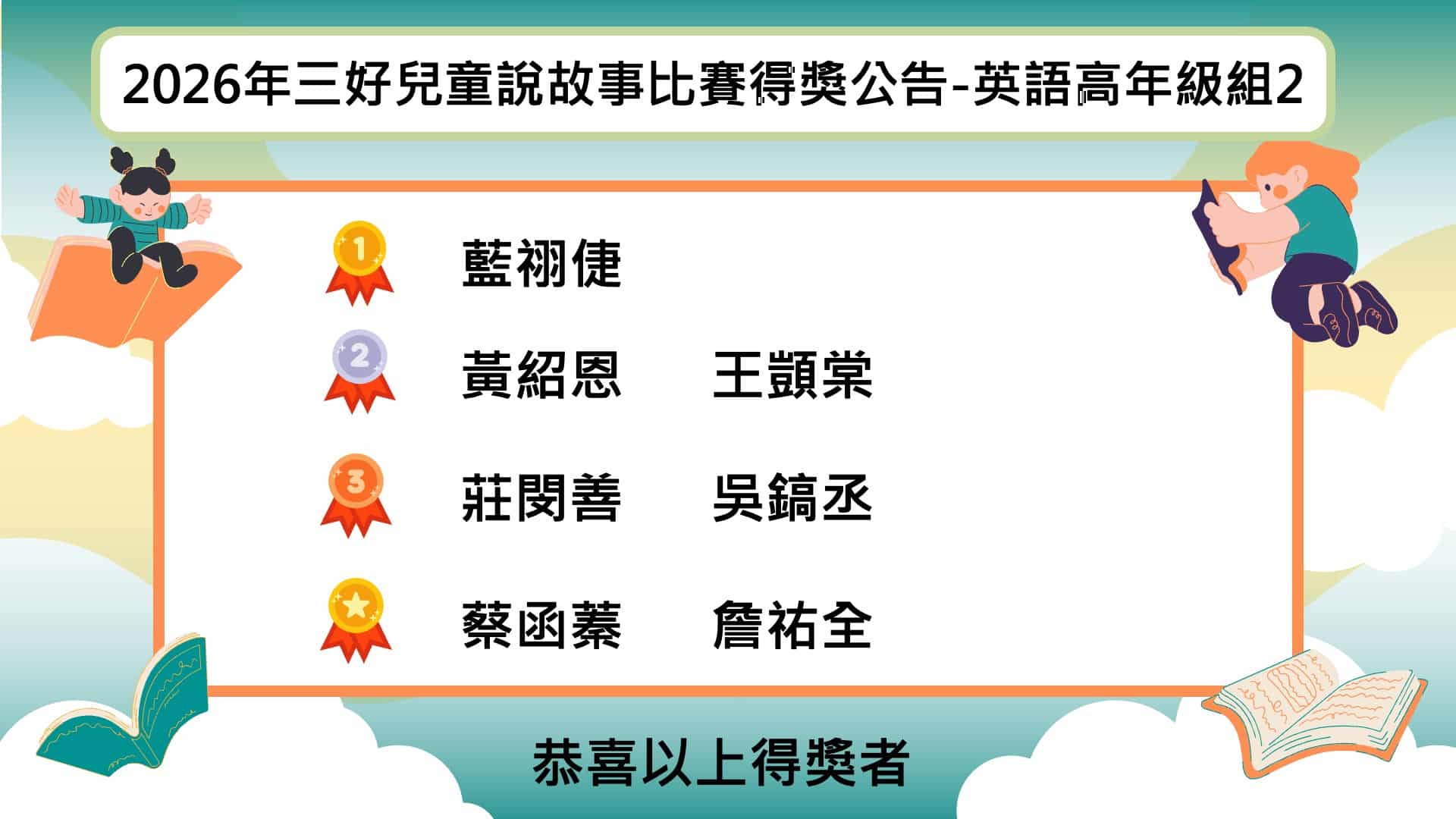【活動公告】2026年三好兒童說故事比賽得獎公告-英語組