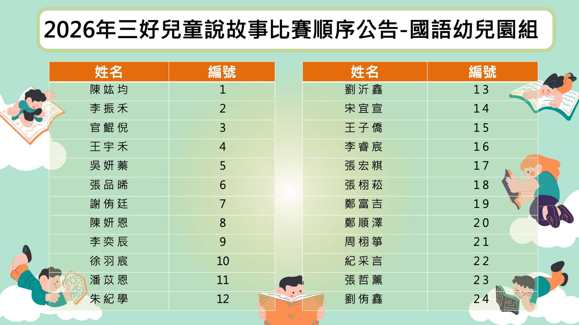 【活動公告】2026年三好兒童說故事比賽順序公告-國語幼兒園組