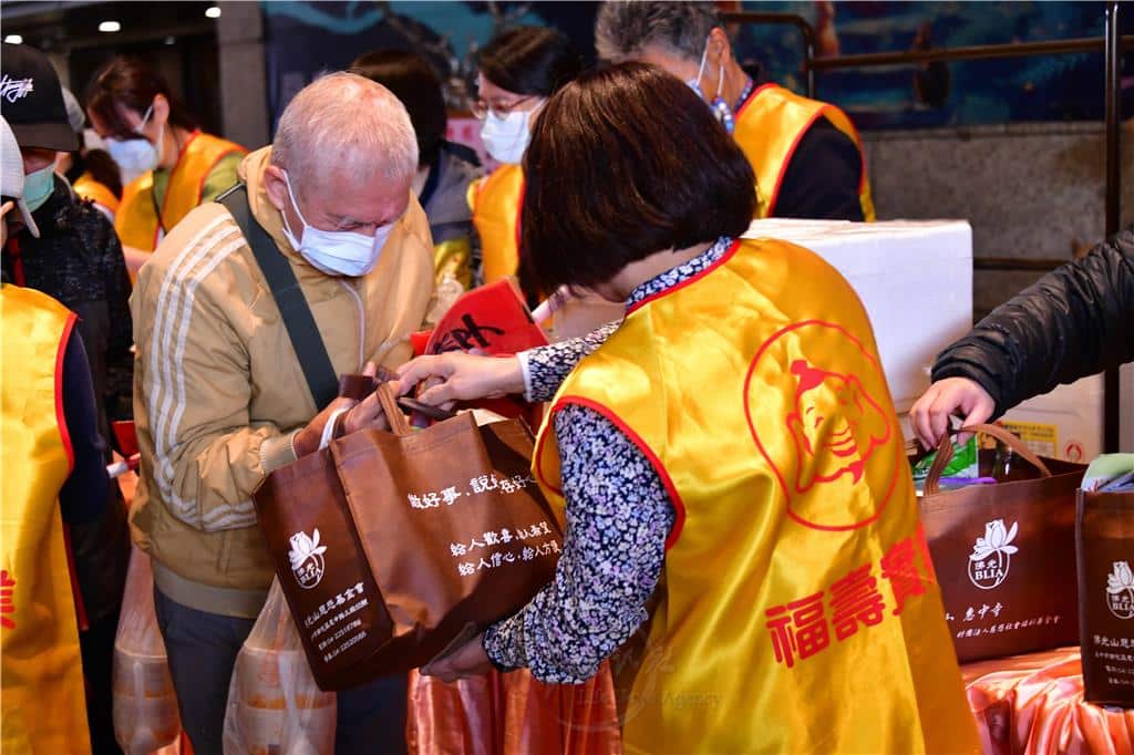 在地知名企業福壽實業股份有限公司協理徐沛妤領軍,帶領30位員工及家屬共襄盛舉。這已是該公司連續第18年參與惠中寺的寒冬送暖活動,今年,特別贊助佛光體系寺院5700罐自家生產的「元氣 UP 調和油」,其中2500罐發放惠中寺。