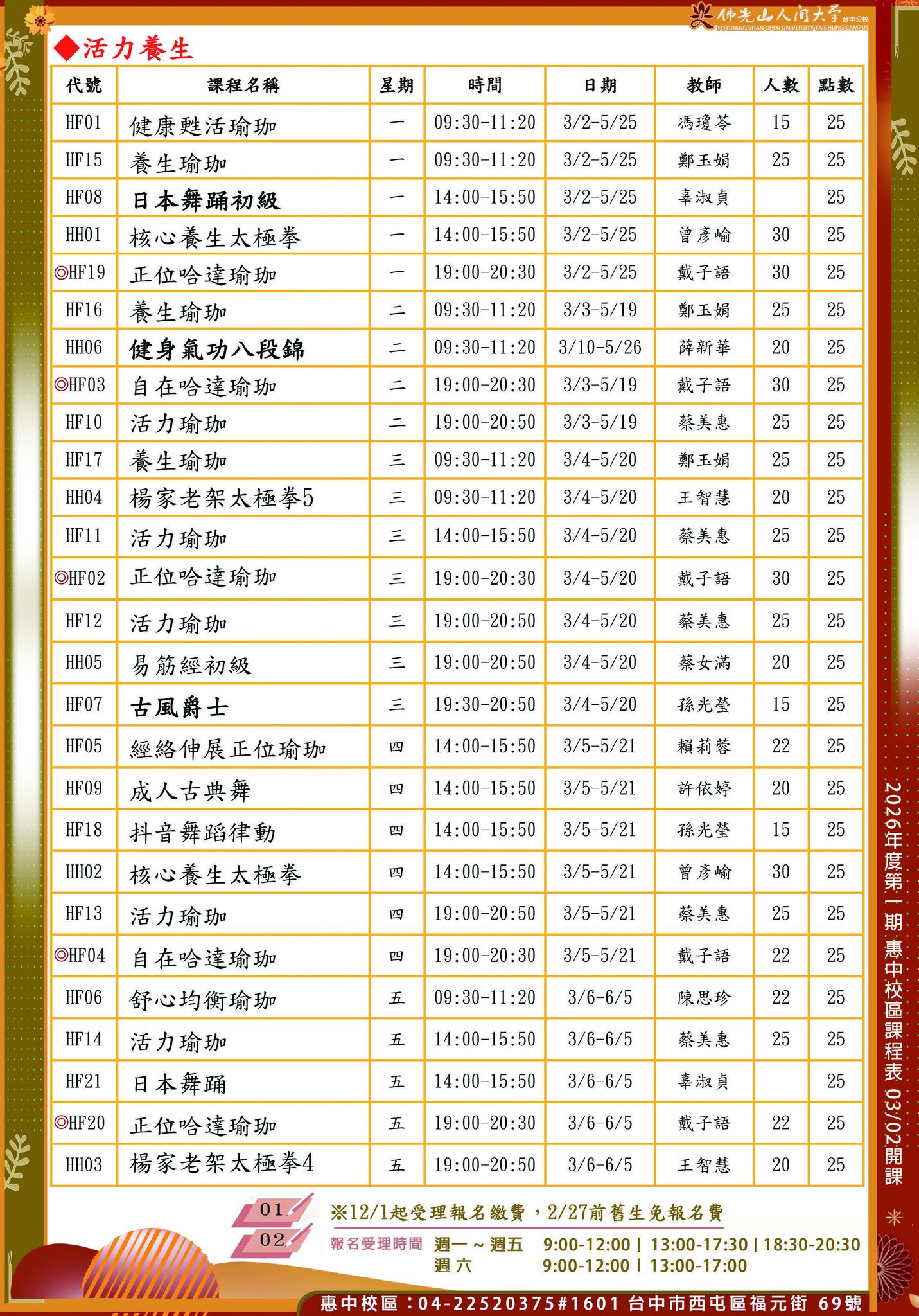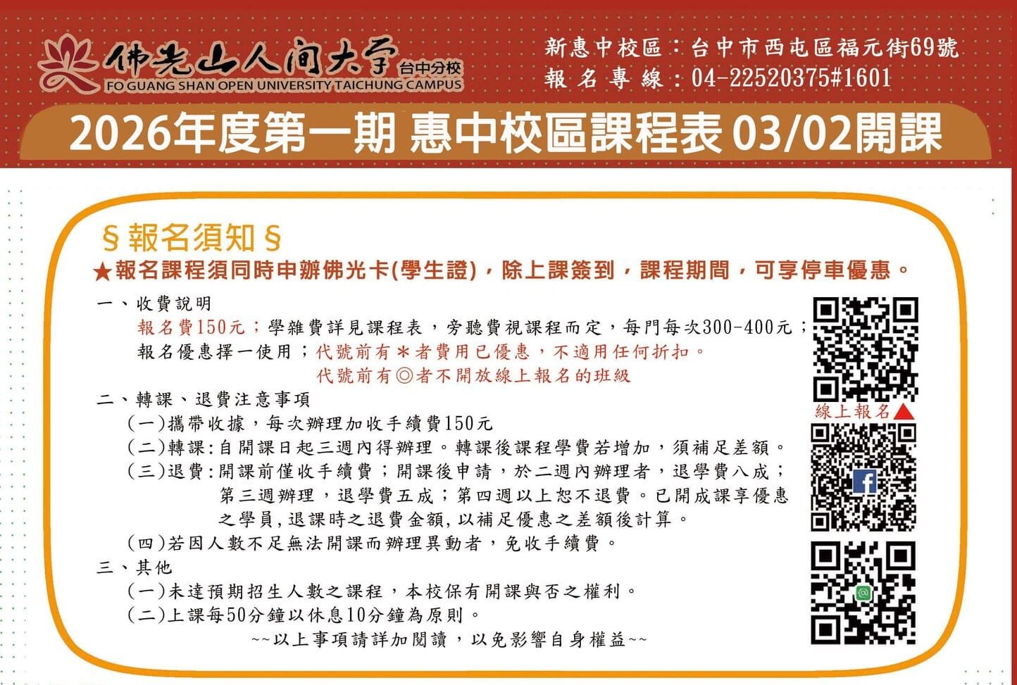人間大學台中分校115-1期課程招生中|學習,讓生活更安定美好