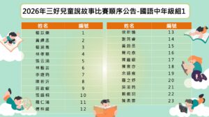 2026年三好兒童說故事比賽抽籤公告-國語中年級組