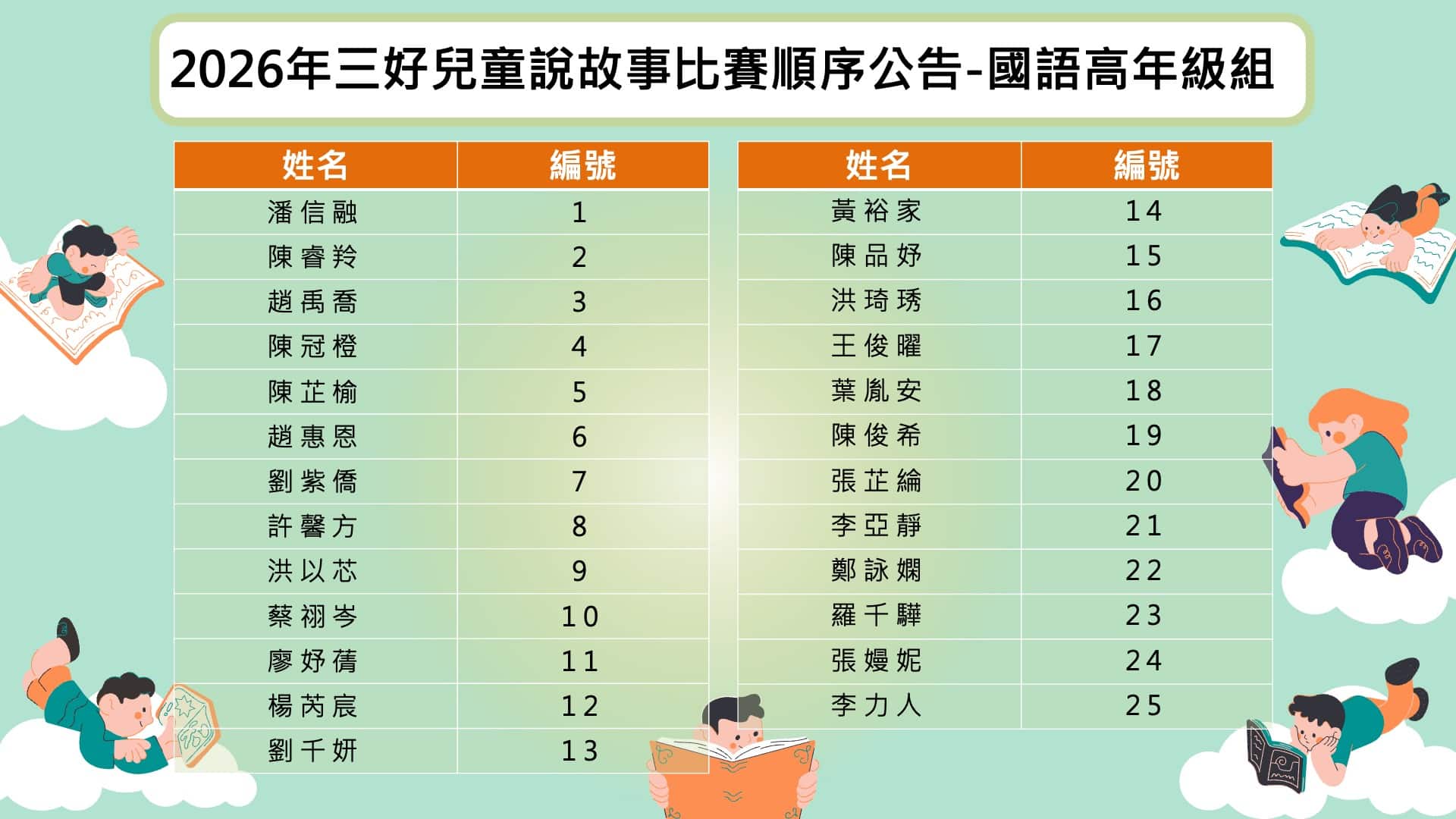 【活動公告】2026年三好兒童說故事比賽順序公告-國語幼兒園組