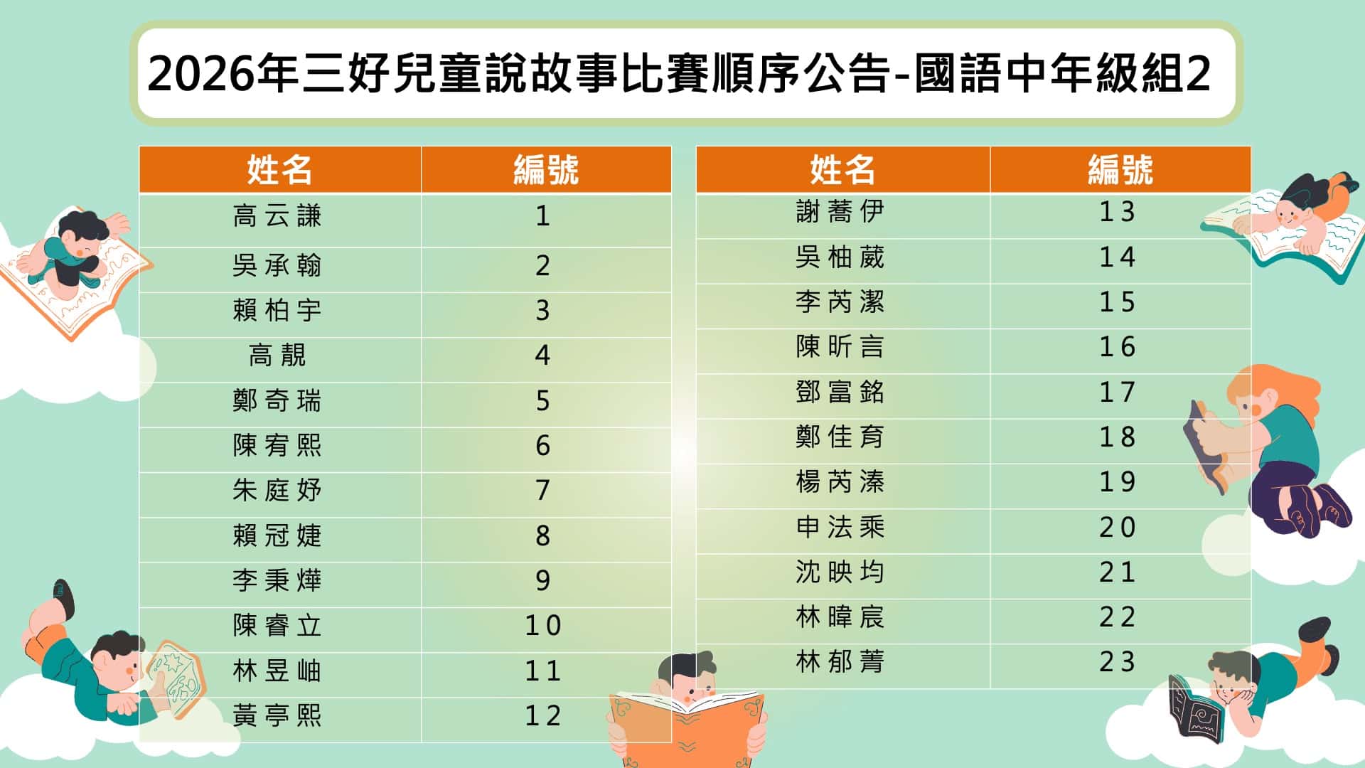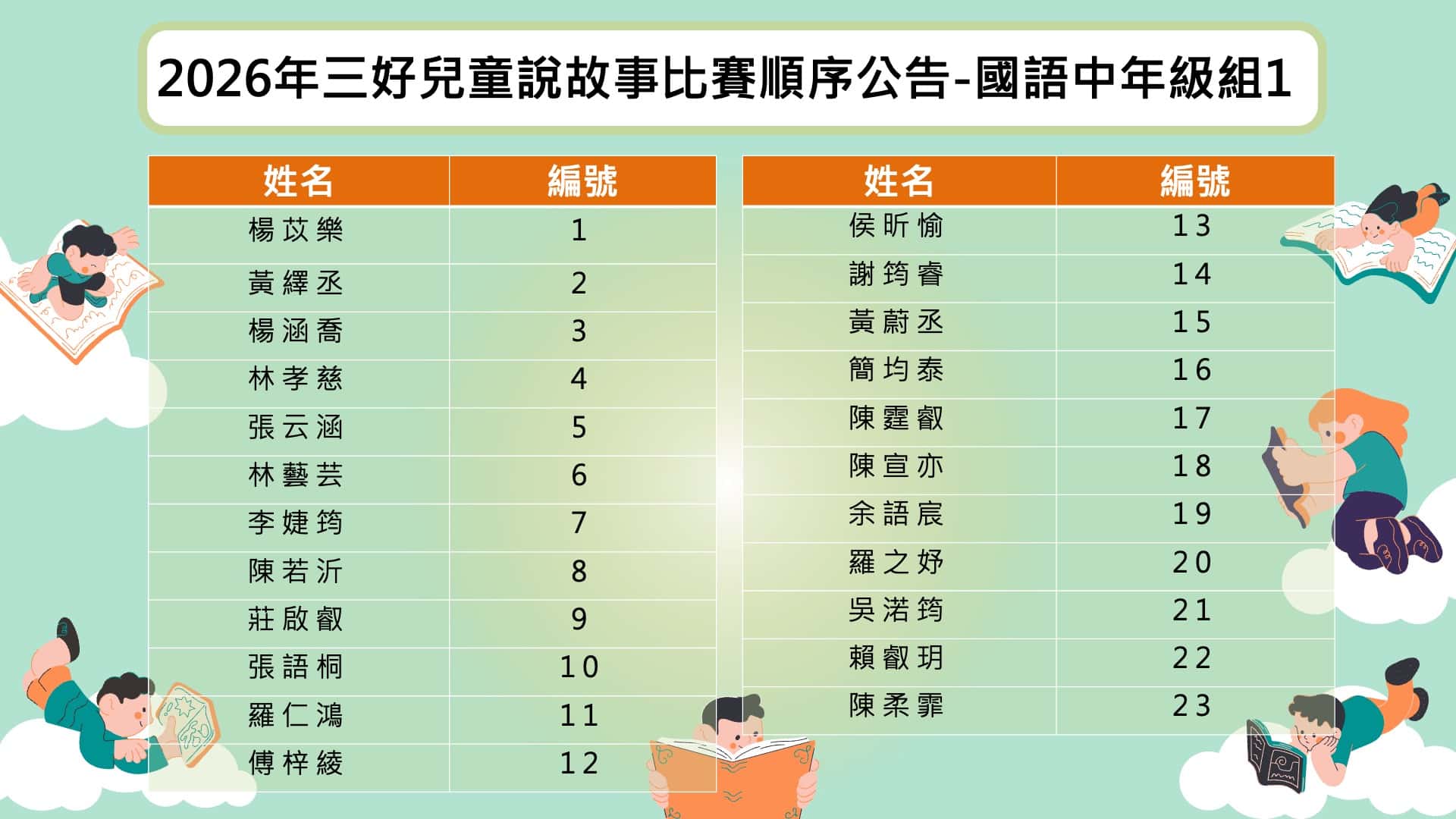 【活動公告】2026年三好兒童說故事比賽順序公告-國語幼兒園組