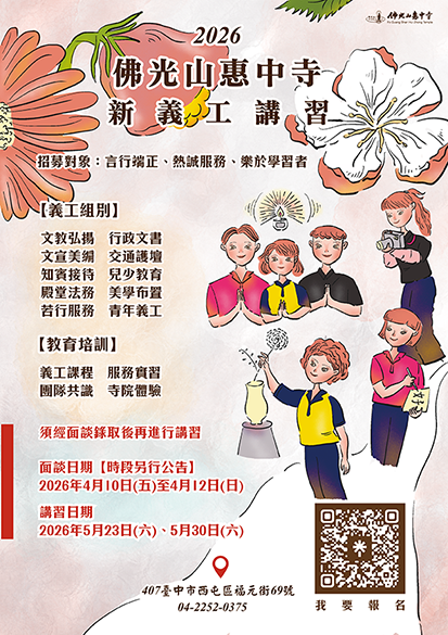 [道場活動]2026 佛光山惠中寺 【新義工講習】 報名中
